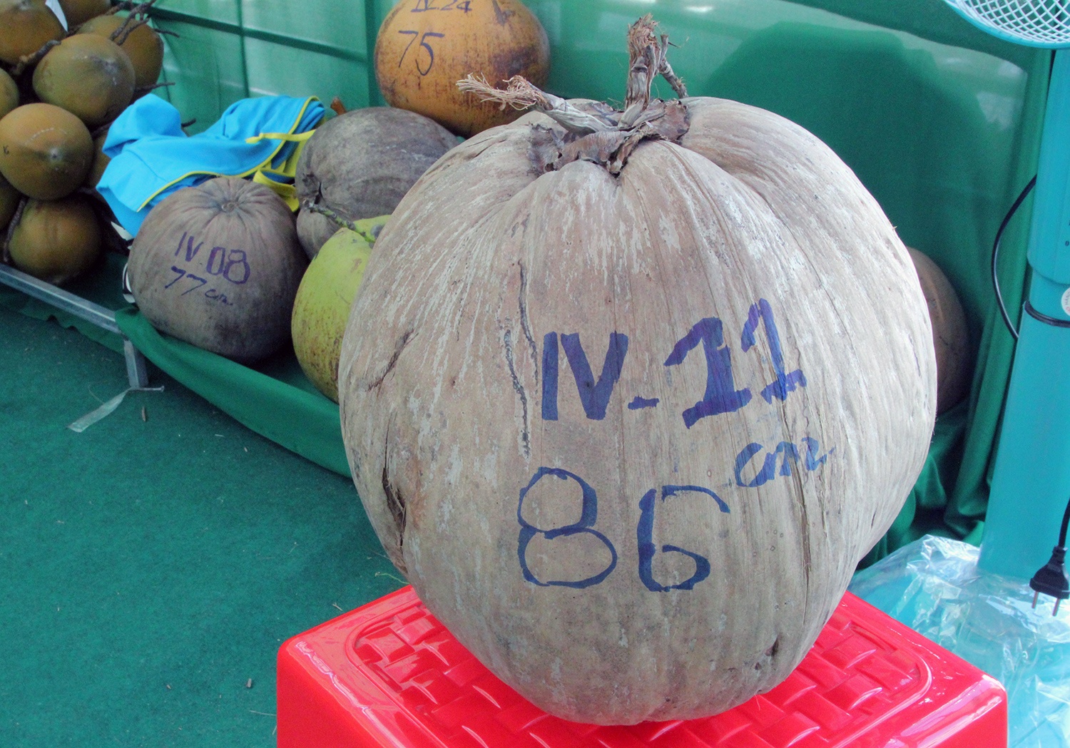 | Đạt kỷ lục về kích thước là quả dừa có chu vi 86 cm. |