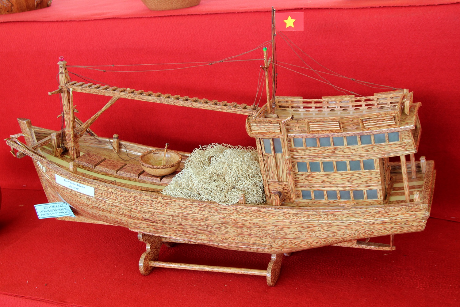 | Mô hình con thuyền đánh cá làm bằng thân dừa. |