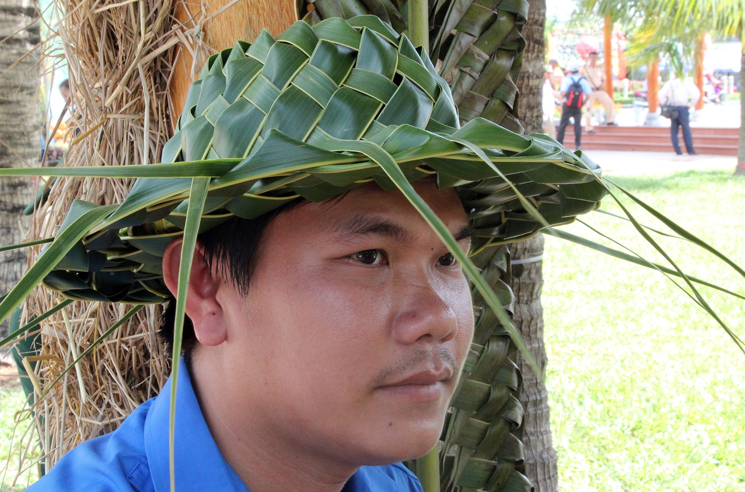 | Lá loại cây nổi tiếng ở đất Bến Tre được nghệ nhân đan thành những chiếc nón bán giá 30.000 đồng. |