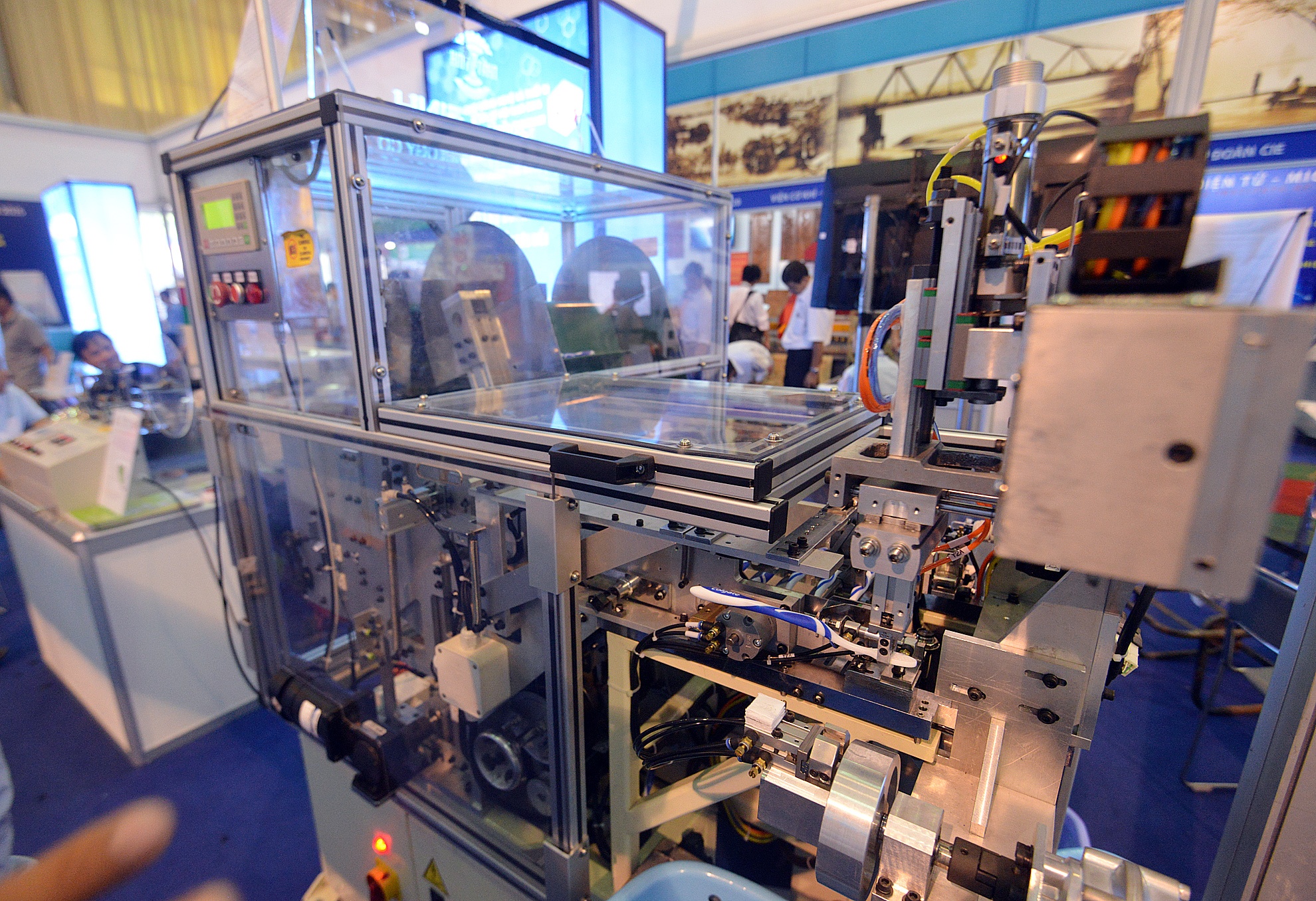 Robot, máy bay không người lái, mô hình tàu quân y, cảnh sát biển... vừa được các doanh nghiệp, nhà sáng chế mang ra trình làng tại hội chợ công nghệ (Hà Nội).