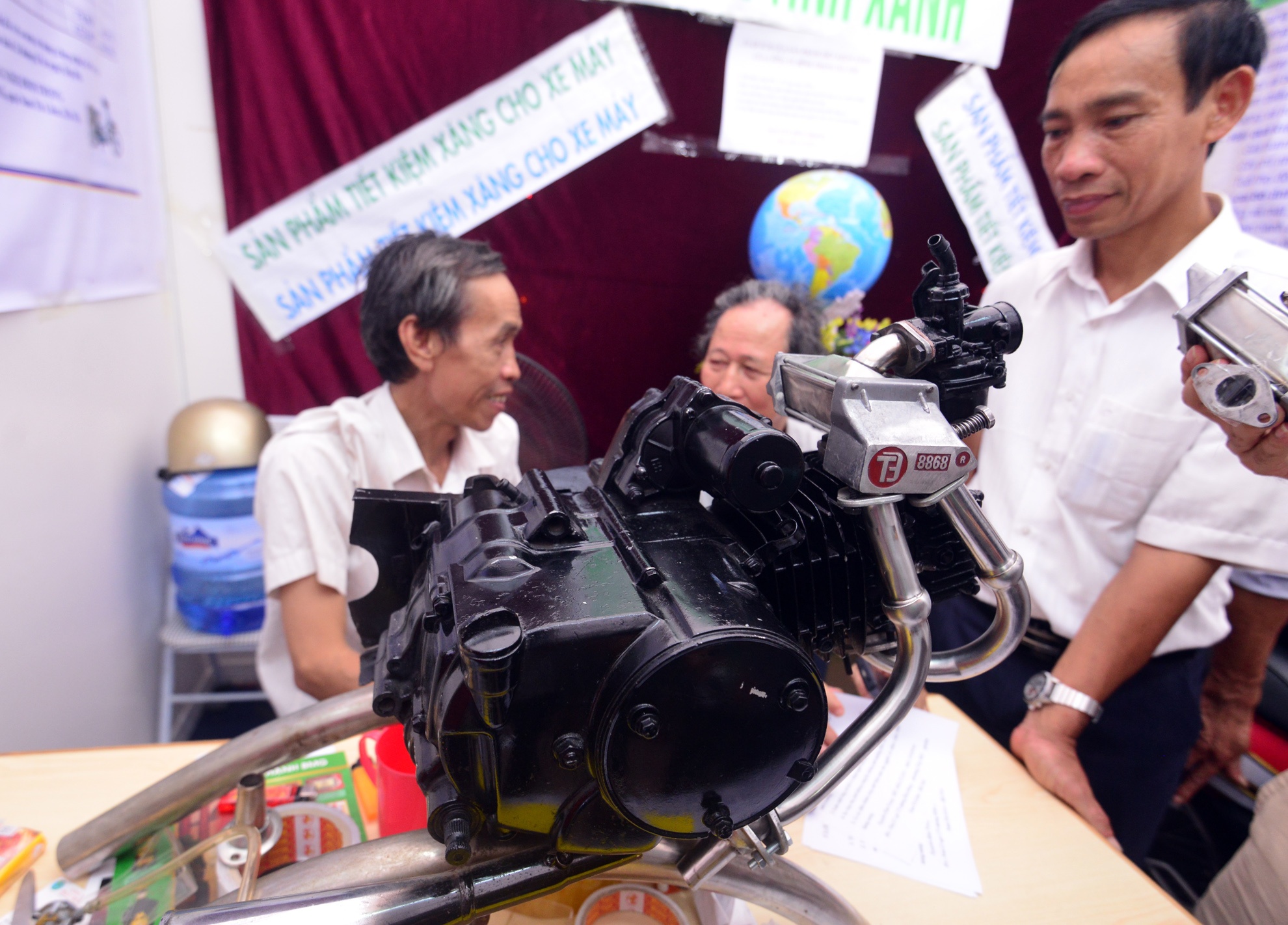 | Mô hình sản phẩm tiết kiệm xăng của một công ty tại Hà Nội. Theo giới thiệu, sau khi lắp đặt vào xe máy, thiết bị này có thể giảm lượng tiêu thụ nhiên liệu tới 40% (1 lít xăng chạy được 90 km). Ngoài ra, xe chạy êm, lướt, không rung lắc, không ảnh hưởng đến động cơ. |