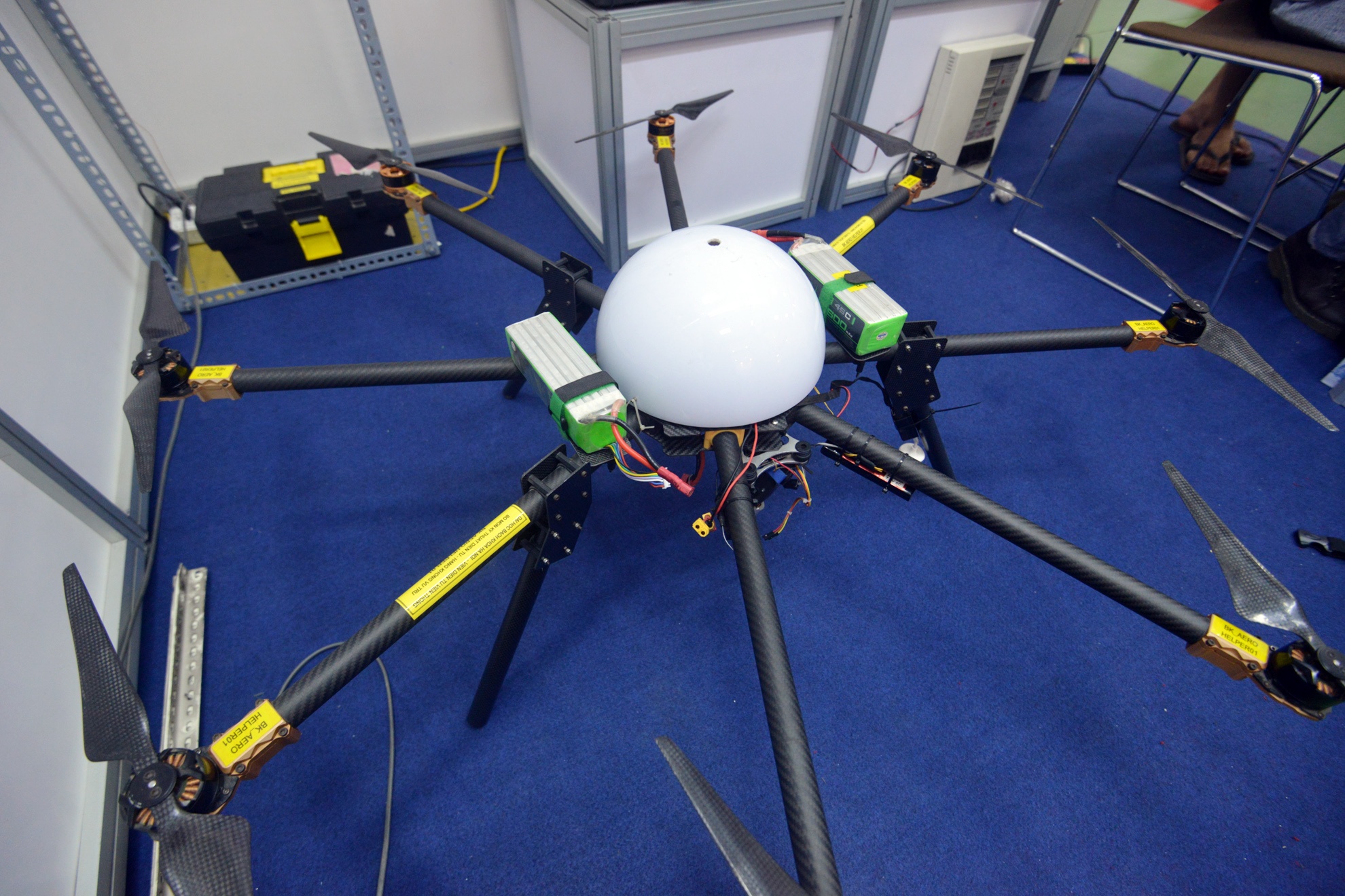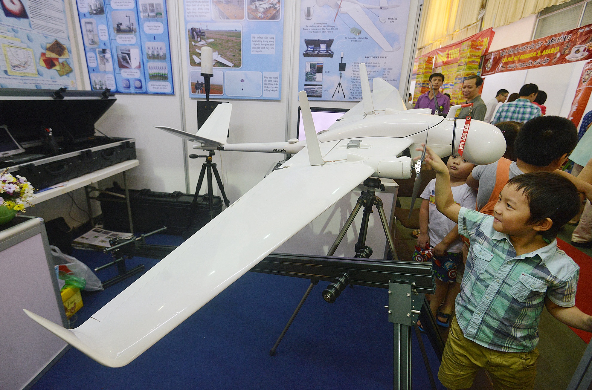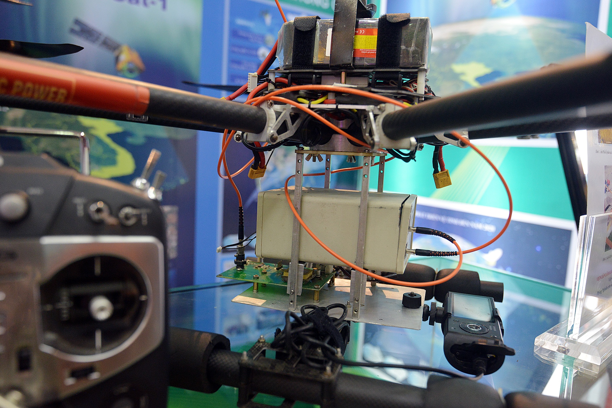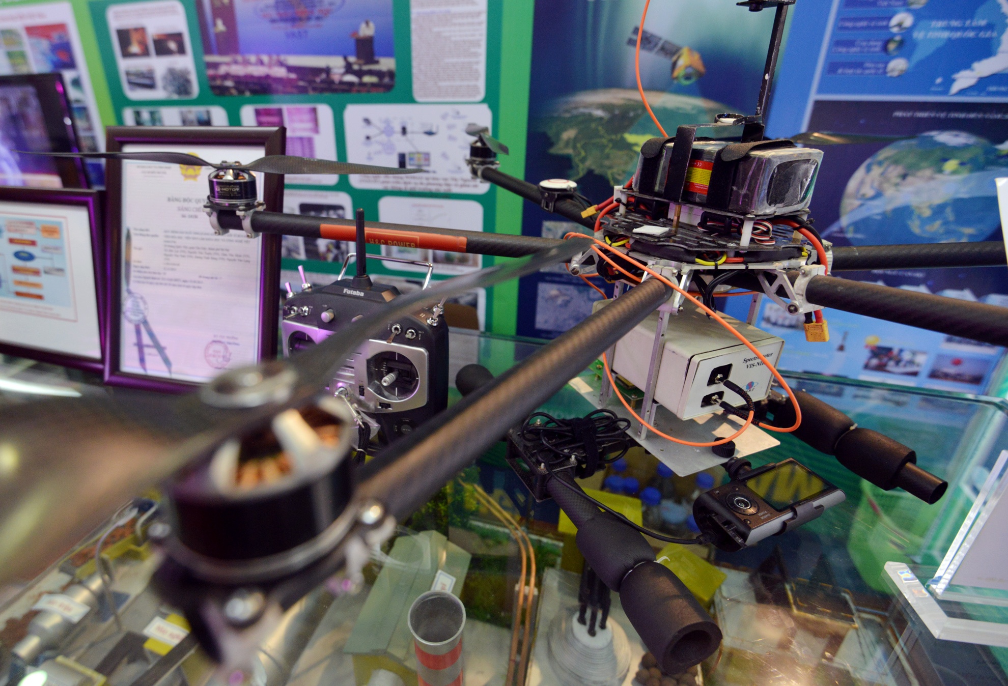 Một chiếc máy bay không người lái của Viện cơ khí động lực (Đại học Bách khoa Hà Nội) có thể mang vật nặng 5 kg, trần bay 500 m, có thể lắp ảnh DSLR, GoPro để quan sát, chụp ảnh và làm công tác trinh sát quốc phòng.