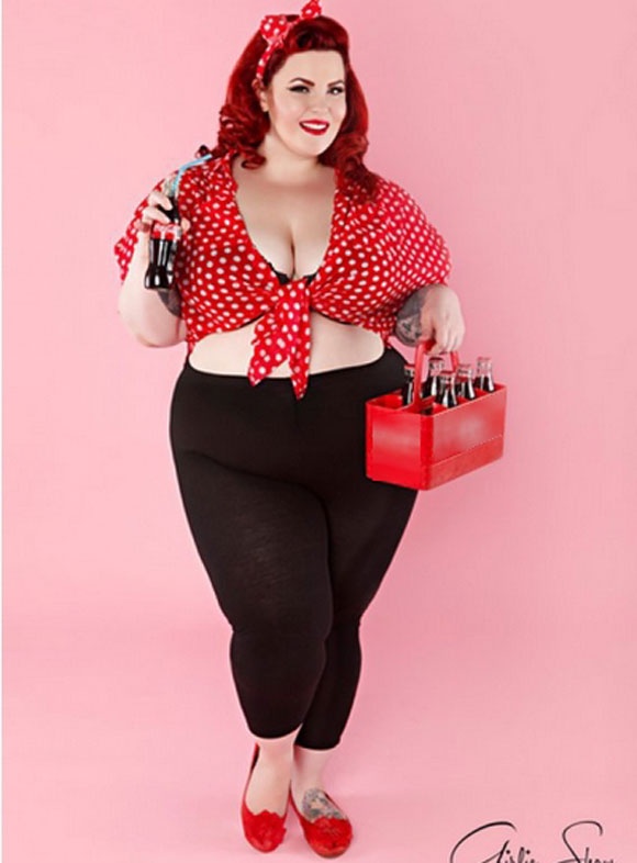 | Nàng mẫu "béo" Velvet d'Amour có thân hình đồng hồ cát trở nên nổi tiếng khi được Jean Paul Gaultier mời tham gia catwalk vào show diễn xuân hè 2007 tại Paris. Cô đang sở hữu tạp chí VOL*UP*2 - khuyến khích độc giả tự chỉ ra điểm khiếm khuyết và phô diễn những phần đẹp nhất trên cơ thể. |