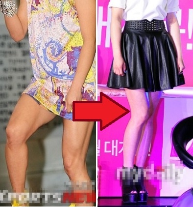Thành viên của T-ara – Boram có đôi chân gầy đáng báo động. Không chỉ thế, đôi khi chân của Boram còn lộ cả vùng gân xanh khá khó hiểu.