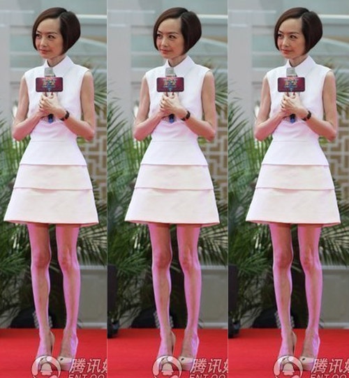 Đồng Lệ Á là người đẹp hàng “ngọc nữ” của màn ảnh nhỏ Trung Hoa. Tuy nhiên, nhiều cư dân mạng đã hoảng hốt khi phát hiện đôi chân của cô gầy ngoài sức tưởng tượng. Phần đùi thậm chí còn biến dạng khá đáng sợ.