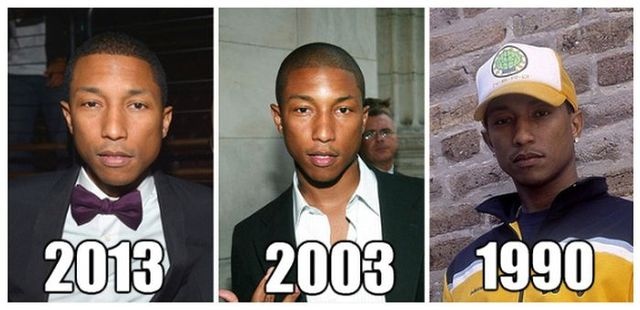 | Giọng ca Happy - Phareal Williams xứng đáng với danh hiệu người đàn ông không tuổi khi hình ảnh của anh ở thời điểm hiện tại và 20 năm trước không có bất kỳ sự thay đổi nào đáng kể. |