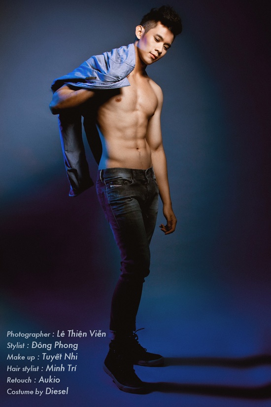 Nam diễn viên tay ngang cũng không quên khoe body chuẩn của mình trong những bộ ảnh thời trang. Vẻ nam tính của Hồ Vĩnh Khoa có thể đốn tim hàng loạt phái đẹp.