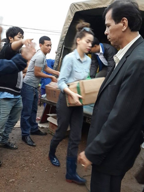 | Dù là phụ nữ chân yếu tay mềm nhưng Hồ Ngọc Hà lại rất mạnh mẽ khi tự tay khuôn vác đồ giúp mọi người trong một chuyến đi từ thiện. |