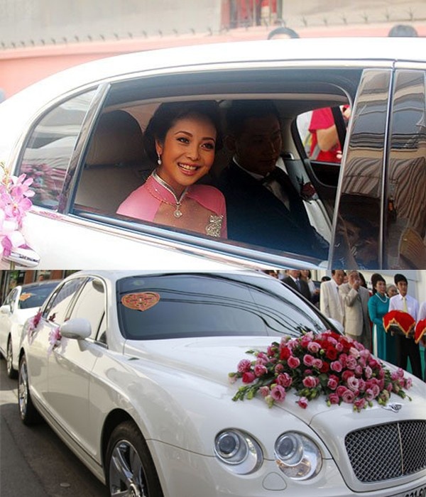 | Đám cưới MC Quỳnh Chi gây ấn tượng với dàn xế siêu sang:Cũng kết hôn với một thiếu gia chơi xe, đám cưới của MC kiêm hot girl Quỳnh Chi ngập tràn xế hộp khủng. Trong ngày trọng đại làm dâu nhà đại gia thủy sản, Quỳnh Chi được chú rể Văn Chương đón bằng chiếc Bentley Continental Flying Spur màu trắng có giá vào thời điểm đó là 190.000 USD, theo sau là loạt xế hộp hạng sang khác. |