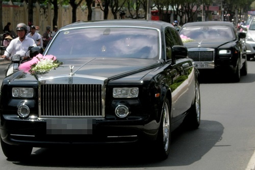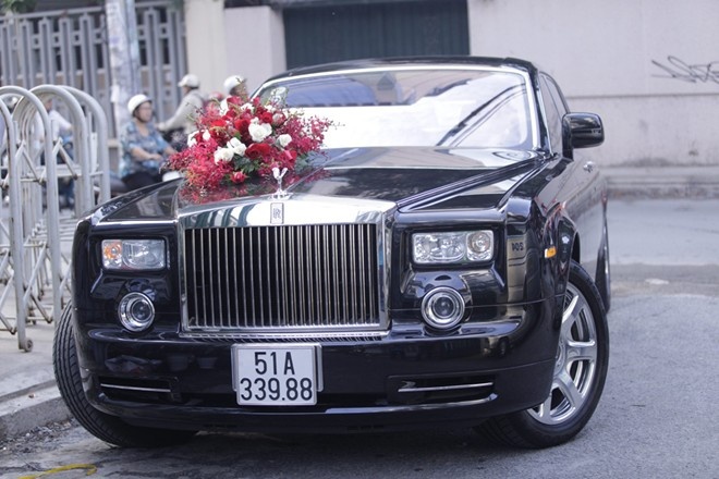 | Trong đoàn xe rước dâu còn có chiếc Rolls-Royce Phantom với mức giá khoảng 1,3 triệu USD - tương đương 25 tỷ đồng khi về Việt Nam. Đám cưới của Quỳnh Chi được lọt vào danh sách những đám cưới xa hoa bậc nhất tại Việt Nam. |