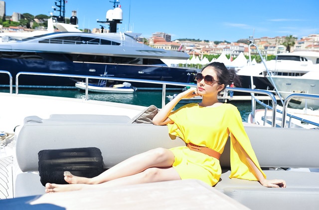 | Diễn viên Vân Trang thư giãn trên du thuyền trong chuyến đi LHP Cannes. |