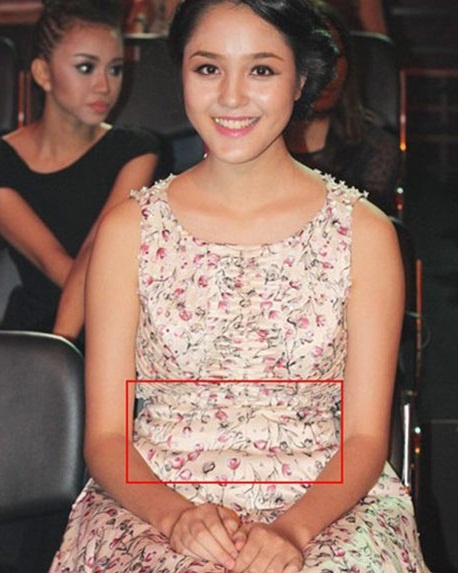 | Hoàng Anh lộ cả vòng 2 "ngấn mỡ" khi tham gia một sự kiện giải trí. |