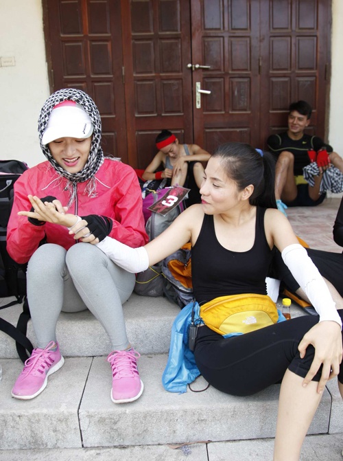 | Tận dụng giờ nghỉ giảo lao trong chương trình Cuộc đua kỳ thú, Hương Giang Idol trổ tài xem chỉ tay cho Kiwi Ngô Mai Trang. |