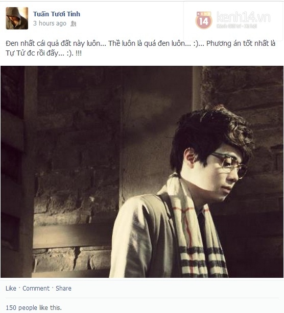 Bùi Anh Tuấn từng làm các fan hoảng hồn khi viết một status khá nặng nề: "Đen nhất cái quả đất này luôn. Thề luôn là quá đen luôn. Phương án tốt nhất là tự tử được rồi đấy".
