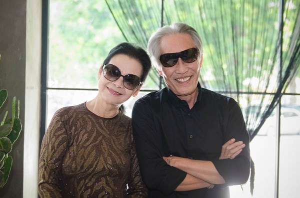 | Khánh Ly bên người chồng hiện tại - ông Hoàng Đoan trong buổi họp báo trước đêm liveshow tại Hà Nội vào tháng 8/2014. |
