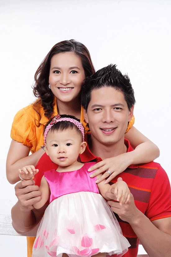 | Bình Minh bên vợ và con. |
