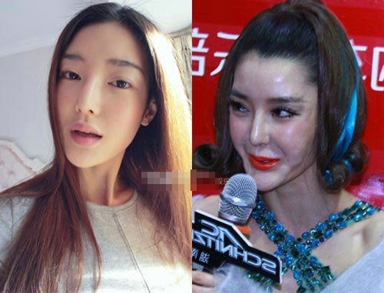 | Lý Dĩnh Chi từng được xem là bản sao của "Đại S", nhưng gương mặt cô cũng biến dạng vì độn cằm, chỉnh sửa gương mặt. |