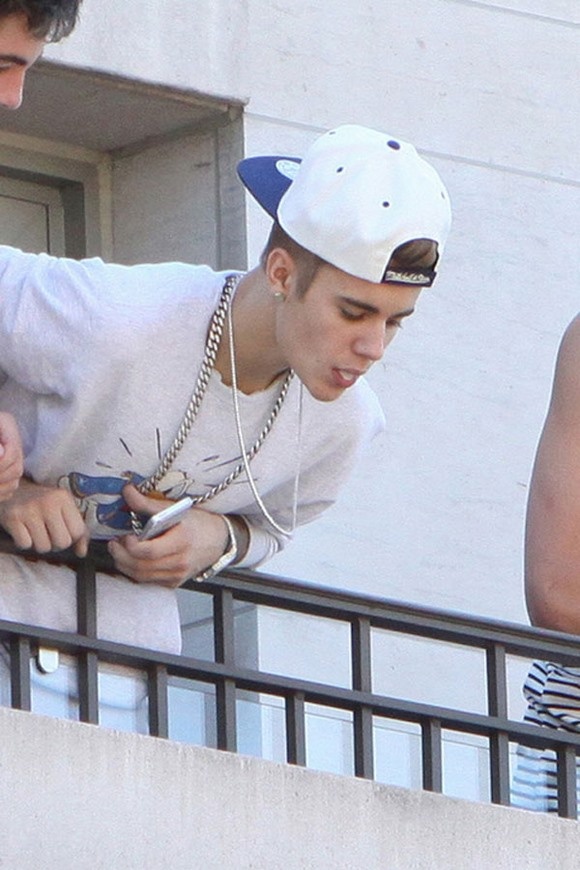 Hè năm ngoái, trang TMZ đã thu thập được hình ảnh Justin Bieber đang khạc nhổ khi đứng trên ban công khách sạn ở Toronto (Canada). Được biết, hôm ấy có khá nhiều fan của Justin đứng bên dưới khách sạn này. Trước đó Justin cũng từng bị tố đã khạc nhổ vào chai nước của một phụ nữ ở phòng gym, vào mặt một người hàng xóm và vào mặt một DJ.
