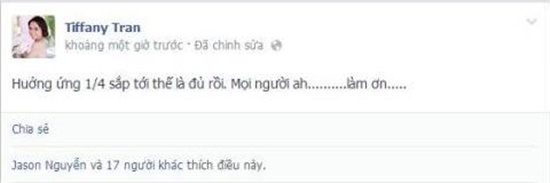 Khi mọi việc đang rất căng thẳng bởi Andrea cũng chẳng vừa, mẫu tây đăng đàn trên trang cá nhân răn đe vợ Baggio và phủ nhận rằng không hề có chuyện này. Ngay sau đó, Quỳnh Trâm lại khiến hết thảy mọi người ngã ngửa vì ngạc nhiên khi tuyên bố đây chỉ là trò đùa nhân ngày 1/4 (ngày nói dối) và mong tất cả hãy bỏ qua. Đến nay, vụ việc chính thức ra sao chỉ có người trong cuộc mới biết rõ.