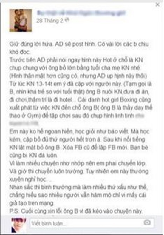 Giữa năm 2014, trên các trang mạng xã hội tràn ngập những hình ảnh hot girl Khả Ngân cặp kè với chính thầy giáo boxing của mình, đặc biệt người đàn ông này đã khá lớn tuổi (U40). Một trang fanpage thậm chí còn dùng khá nhiều lời lẽ cay nghiệt cho hotgirl nổi tiếng với vẻ trong sáng của mình.