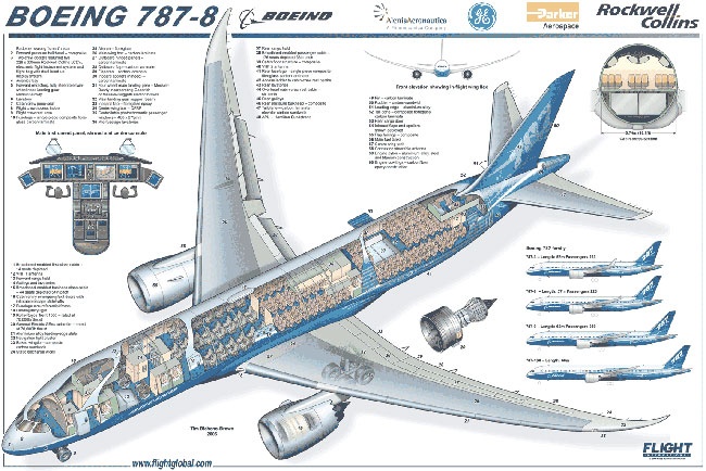 Để thu xếp tài chính cho thương vụ mua chiếc siêu máy bay của Boeing, Vietnam Airlines từng ký hợp dồng tín dụng100 triệu USD với Ngân hàng xuất nhập khẩu Việt Nam - Eximbank. Theo trang web của Eximbank, Vietnam Airlines dự kiến sẽ mở rộng đội bay lên đến 115 chiếc vào năm 2015 và 170 chiếc vào năm 2020, trong đó có Boeing 787-9 công nghệ tiên tiến, tiết kiệm nhiên liệu và thân thiện với môi trường. Ảnh: Thiết kế khoang ngồi và chiều dài một chiếc Boeing 787-9 tiêu chuẩn.