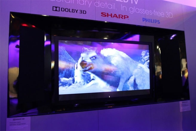 | Hãng Sharp của Nhật Bản mang tới CES 2014 chiếc TV mô hình loại 8K LCD có độ phân giải 33 triệu pixel, lớn gấp 4 lần độ phân giải của TV Ultra HD, hay còn gọi là TV 4K, đồng thời lớn gấp 16 lần độ phân giải của một HDTV thông thường. Để tận dụng được nhiều hơn độ phân giải của chiếc TV này, Sharp đã tạo ra những mắt kính đặc biệt che phủ màn hình nhằm phân bổ một nửa số điểm ảnh vào mắt trái và một nửa số điểm ảnh vào mắt phải của người xem. Kết quả, người xem sẽ không cần phải đeo kính 3D mà vẫn được chiêm ngưỡng những hình 3D với độ phân giải cực cao. |