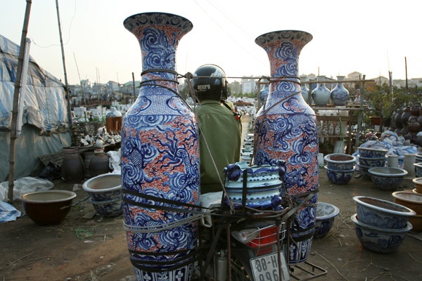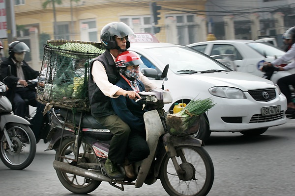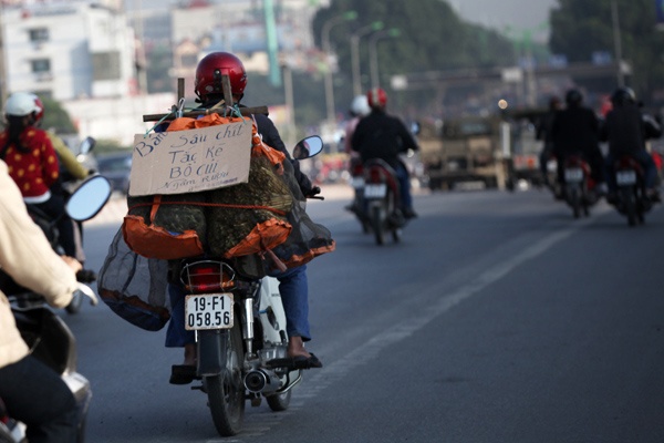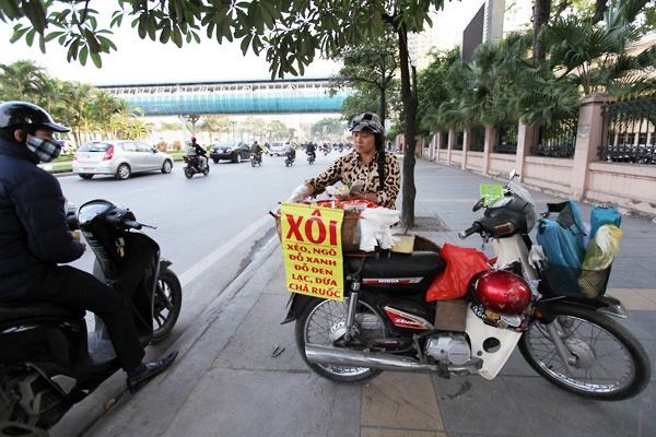 | Hàng ngày, một lượng lớn người dân ngoại thành và các tỉnh lân cận đưa hàng hóa, rau quả vào nội thành Hà Nội tiêu thụ bằng xe gắn máy. Hầu hết gia đình họ sống nhờ công việc này. |