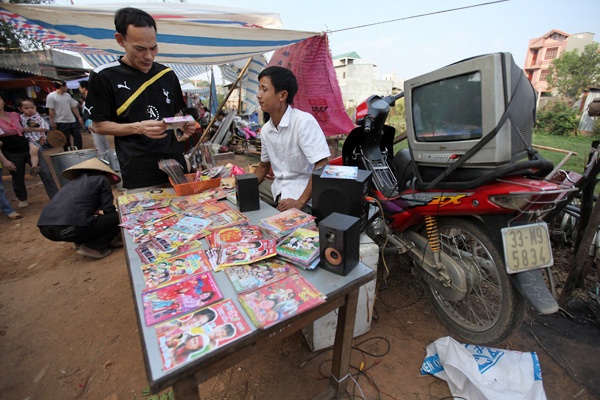 | Quầy bán băng đĩa nhạc tại chợ Nủa (Bình Phú, Thạch Thất, Hà Nội). |