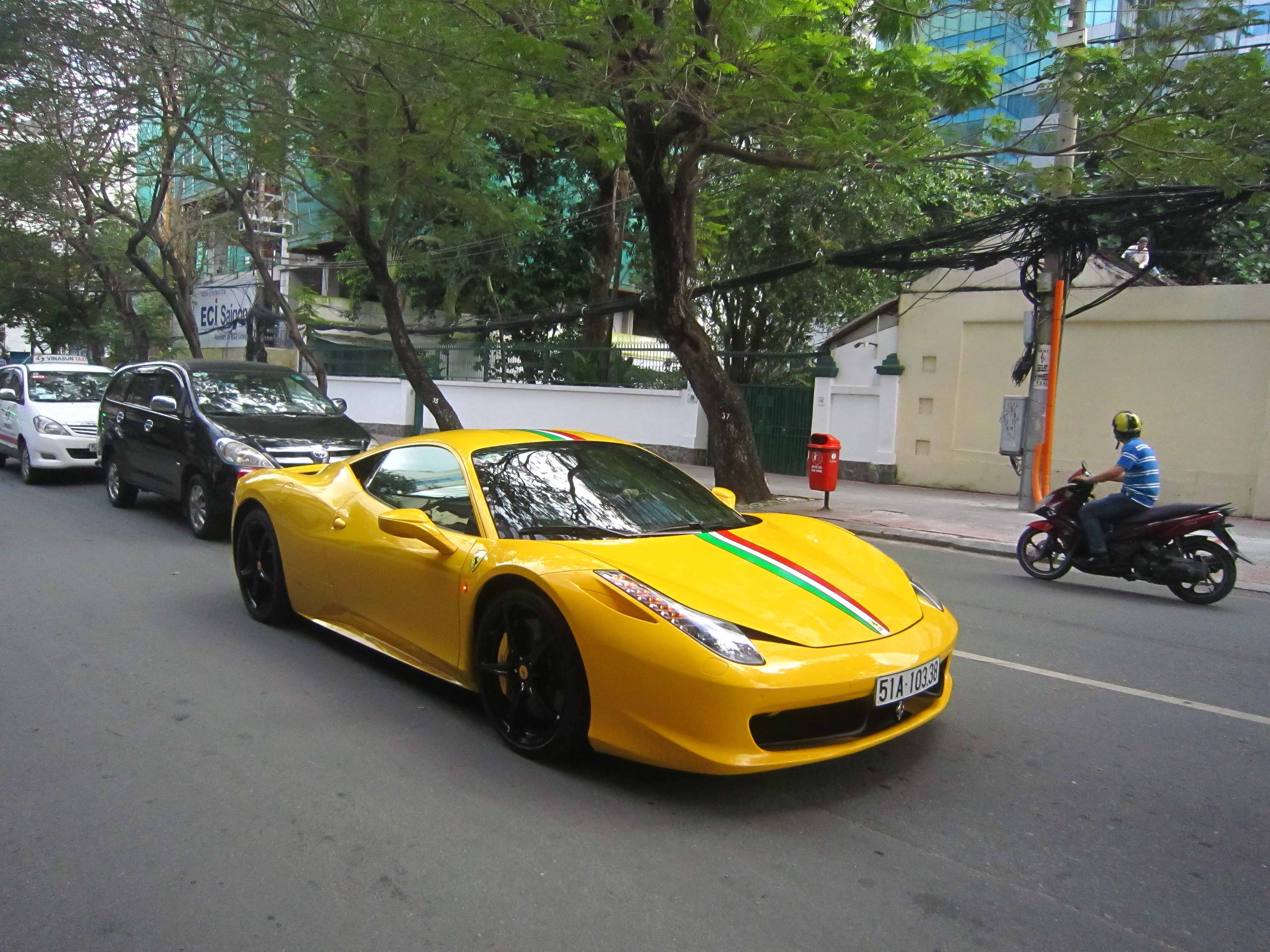 | Đây là siêu xe ra đời nhằm thay thế dòng F430. Động cơ sử dụng trên chiếc xe này là loại phun xăng trực tiếp, dung tích 4.499 phân khối V8, công suất 570 mã lực tại vòng tua 9.000 vòng/phút, mô-men xoắn cực đại 540 Nm tại vòng tua 6.000 vòng/phút. Một chiếc 458 Italia mới và ra biển trắng tại Việt Nam có giá khoảng 750.000 USD (tương đương 16 tỷ đồng). |