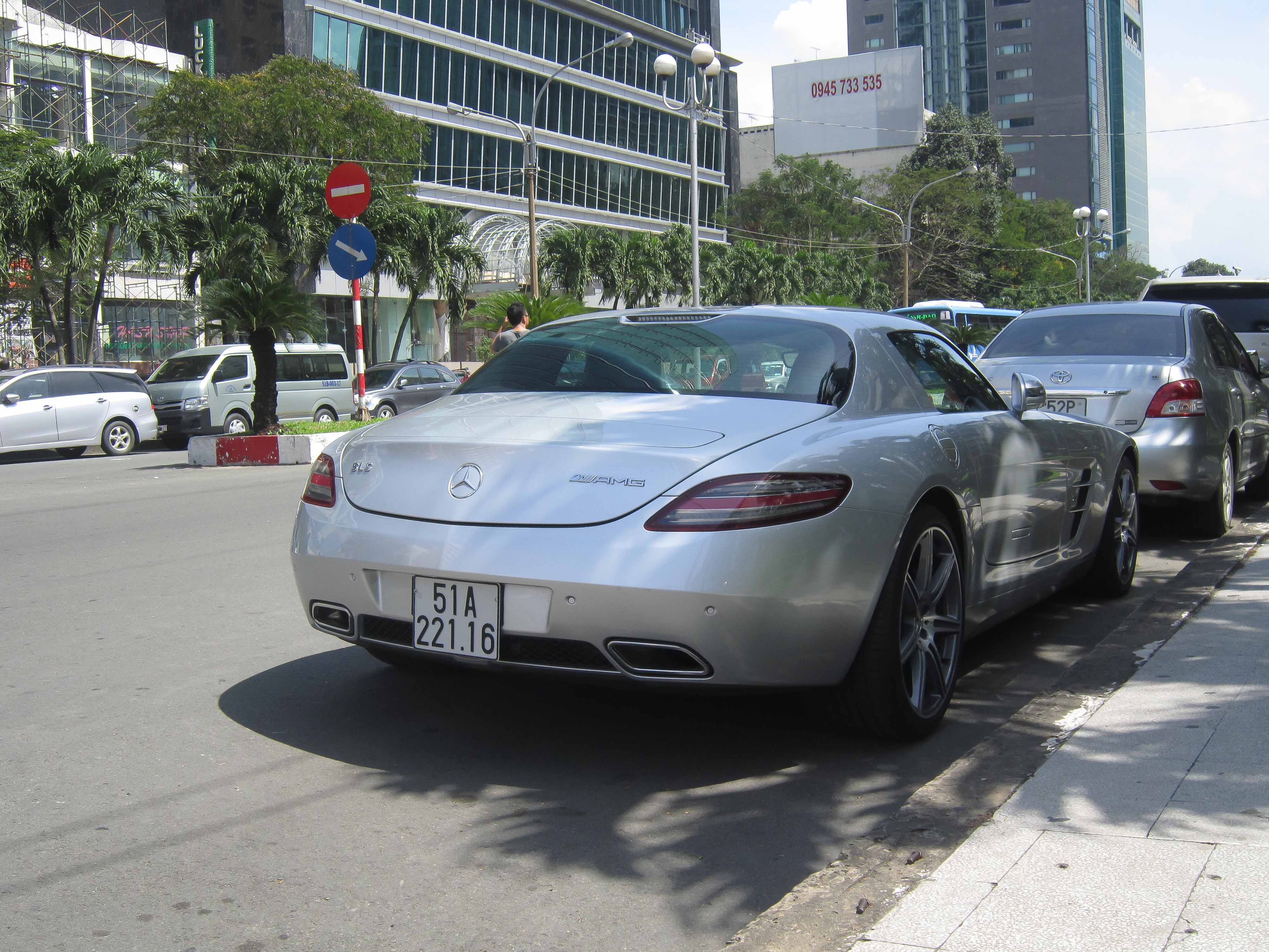 | Mercedes SLS AMG đầu tiên tại Việt Nam thuộc sở hữu của ông chủ một tập đoàn cà phê lớn ở Việt Nam. Siêu xe này rất hiếm khi xuất hiện. |