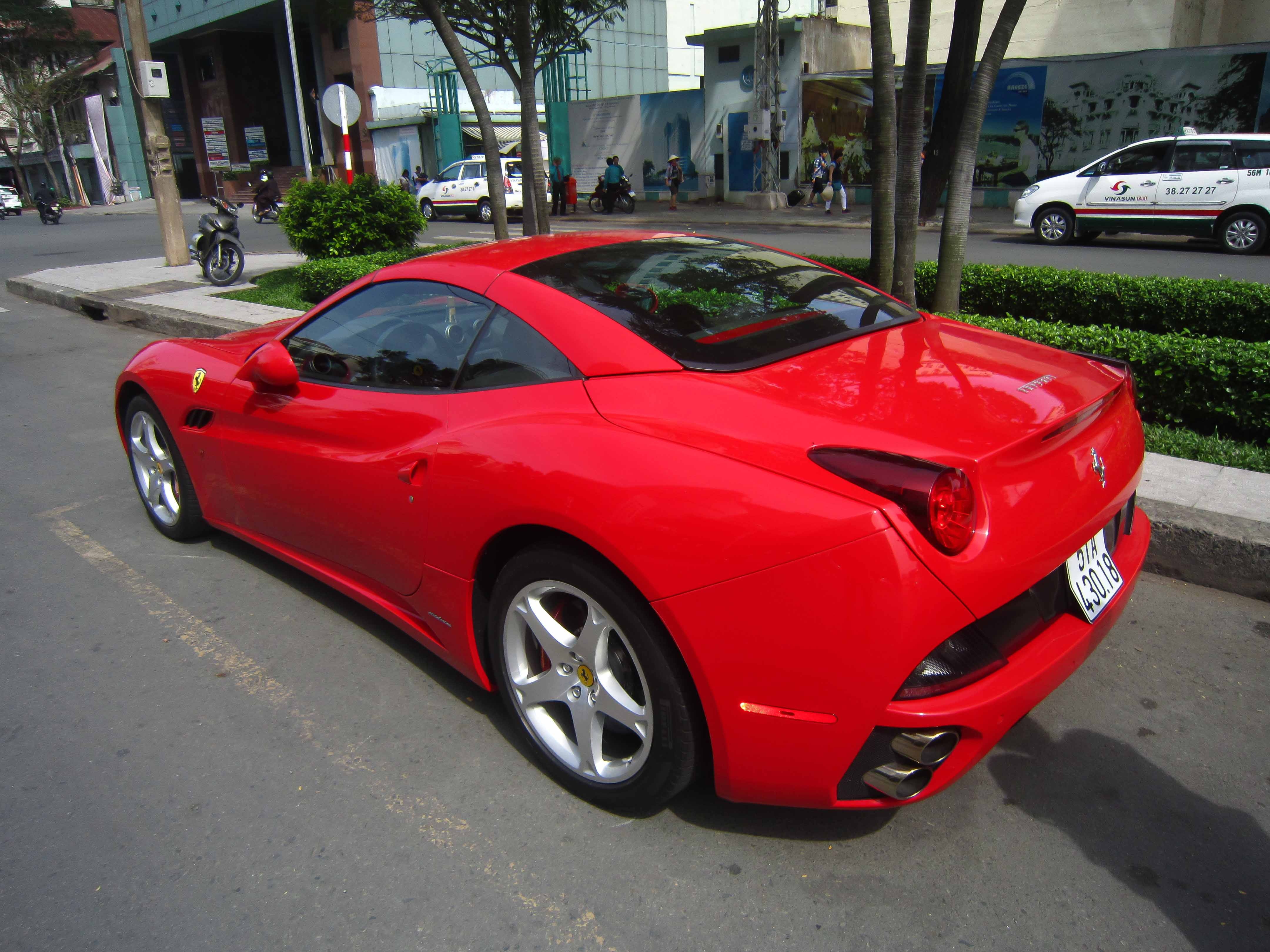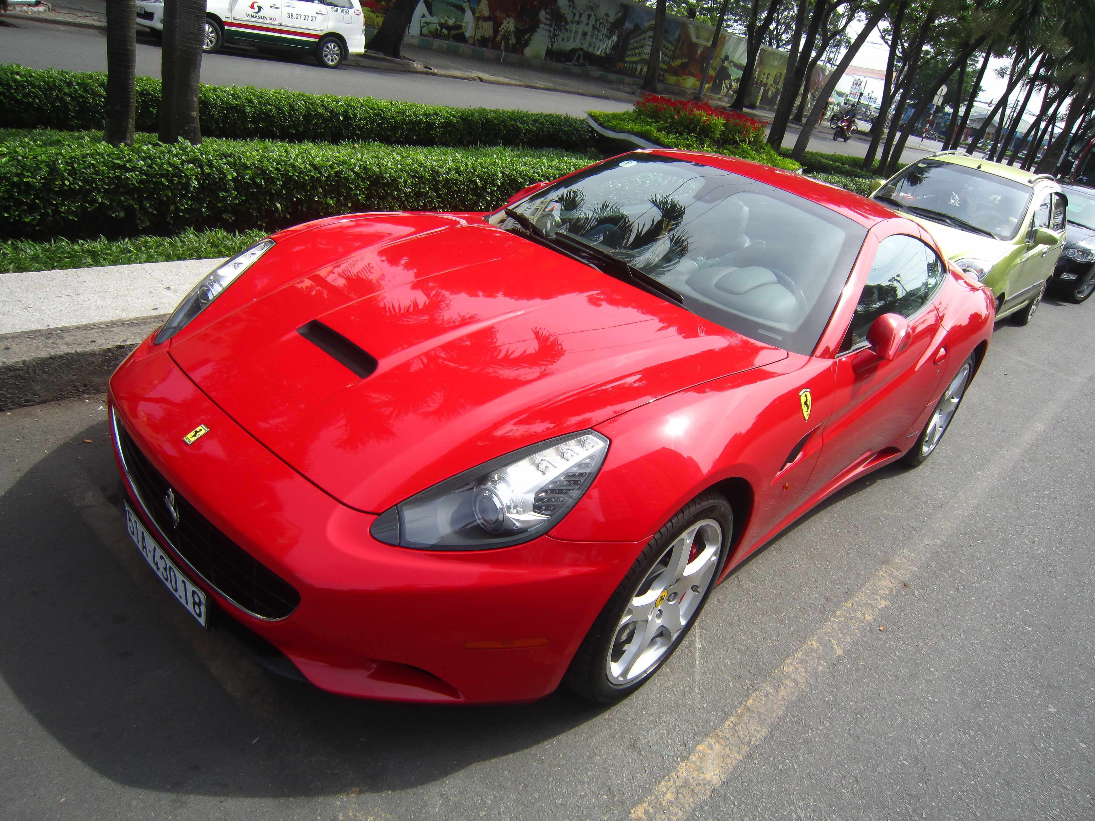 Ferrari California cùng chủ nhân với chiếc SLS màu bạc. Đây là loại xe mui xếp 2+2 chỗ ngồi.