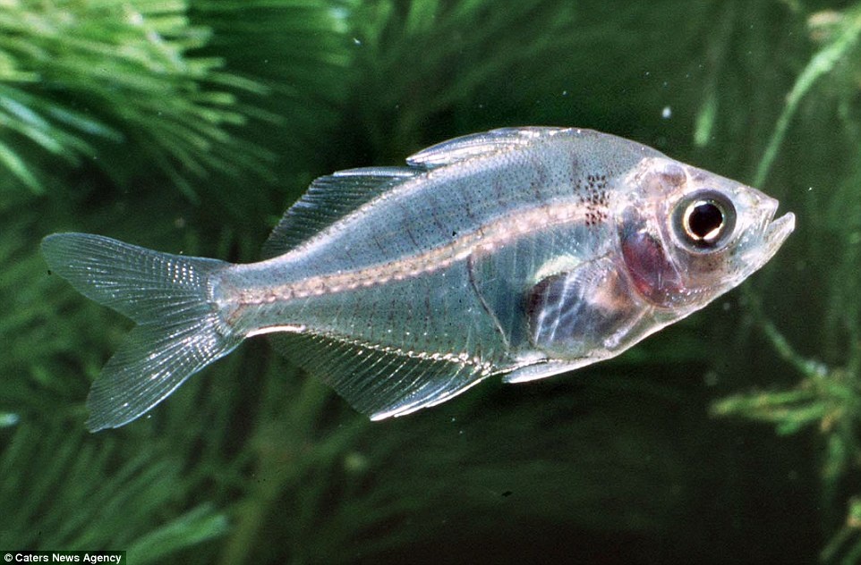 | Phần lớn các sinh vật không có răng, độc tố hay khả năng tăng tốc nhanh chóng ở dưới đại dương đều sở hữu cơ thể trong suốt, theo Sönke Johnsen, một nhà khoa học Mỹ. Chúng ta có thể thấy nó nội tạng của con cá kính này nếu nhìn kỹ. |