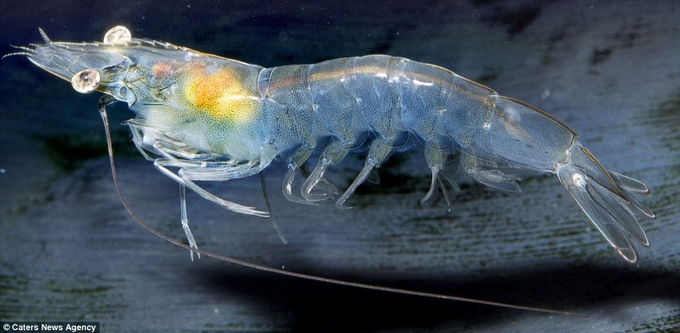 | Mặc dù chưa hoàn toàn nắm được quy trình tiến hóa của những sinh vật "vô hình", nhưng nhiều nhà khoa học vẫn tin rằng, cơ thể trong suốt giúp chúng hòa vào môi trường sống và tăng khả năng tự vệ trước các động vật ăn thịt khác. Con tôm này là một điển hình. Cơ thể nó gần như không có màu, ngoài những đốm đỏ rải rác. |