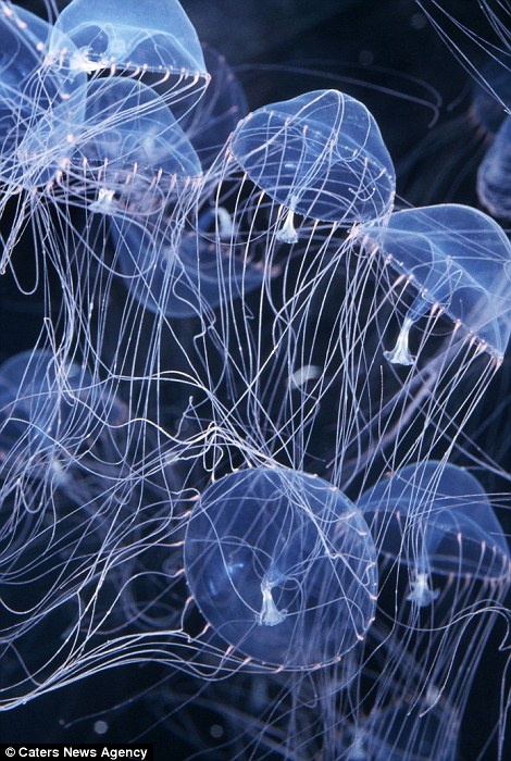| Đàn sứa vô hình trôi nổi giữa lòng đại dương. |