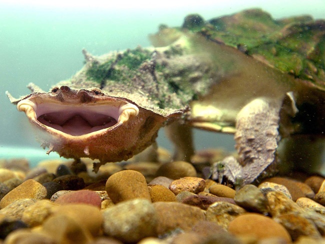 "Quái thú" rùa gai Mata là một trong những loài rùa cổ đại nhất còn tồn tại trên trái đất. Rùa Mata sinh sống chủ yếu ở Nam Mỹ, đặc biệt là ở lưu vực sông Amazon và Orinoco. Vẻ ngoài xù xì tựa chiếc lá khô khi còn nhỏ và gai góc như một tảng đá khi trưởng thành giúp chúng ngụy trang từ khi mới lọt lòng. Rùa gai Mata có thể đạt kích thước mai 45 cm, trọng lượng 15 kg hoặc thậm chí cao hơn. Ảnh: NewsAuCom