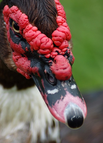 Vịt Muscovy (tên tiếng Việt: Ngan bướu mũi) là loài động vật bậc nhất trong họ lông vũ. Đặc trưng nhất của vịt Muscovy là gương mặt đỏ không lông với phần mào ở gần mũi, nổi u như bướu và chòm lông mào hơi dựng đứng. Chúng có nguồn gốc ở Mexico, Trung và Nam Mỹ. Ảnh: Flickr