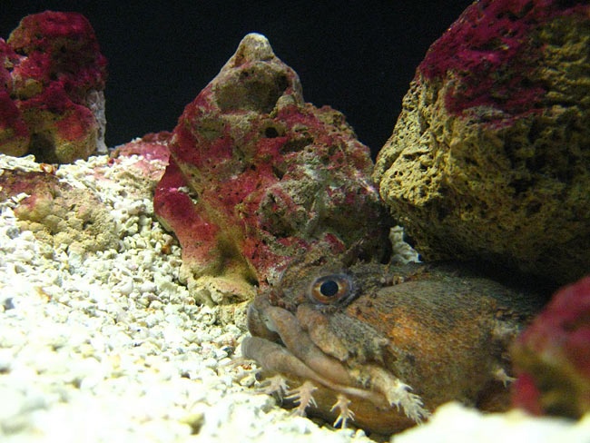 Cá cóc (Oyster Toadfish) không chỉ xấu mà còn rất nguy hiểm. Chúng sở hữu cái đầu quá khổ và phần miệng rộng tới 38 cm. Bộ hàm chắc khỏe giúp chúng dễ dàng nghiền nát những con vật có mai cứng như cua, hàu... Không những thế, thân hình gai góc của cá cóc còn có thể được sử dụng để tự vệ trước kẻ thù. Vây lưng và gai nắp mang của nó chứa chất độc. Nạn nhân có thể tử vong nếu ăn các bộ phận này. Ảnh: Flickr