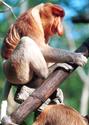 Khỉ vòi, hay còn gọi là khỉ mũi dài, sống chủ yếu tại các hòn đảo ở Đông Nam Á. Nó có vẻ ngoài đặc trưng khó nhầm lẫn, với cái mũi dài và chiếc bụng bự. Chiếc mũi quá khổ, mặc dù rất xấu xí trong mắt con người, nhưng lại là công cụ để một cá thể khỉ vòi tán tỉnh con cái. Ảnh: AP