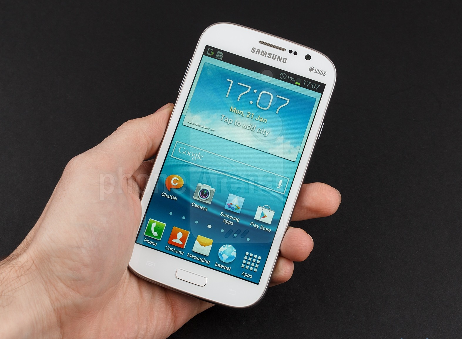 | Galaxy Grand 2 được nâng cấp chất lượng hiển thị và màn hình, cùng với mặt lưng giả da như trên Galaxy Note 3. Ảnh: PhoneArena. |