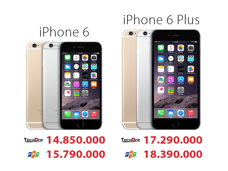 | iPhone 6 giá chỉ 14,85 triệu đồng (giá cũ 16,09 triệu đồng); iPhone 6 Plus giá chỉ 17,29 triệu đồng (giá cũ 18,75 triệu đồng). |