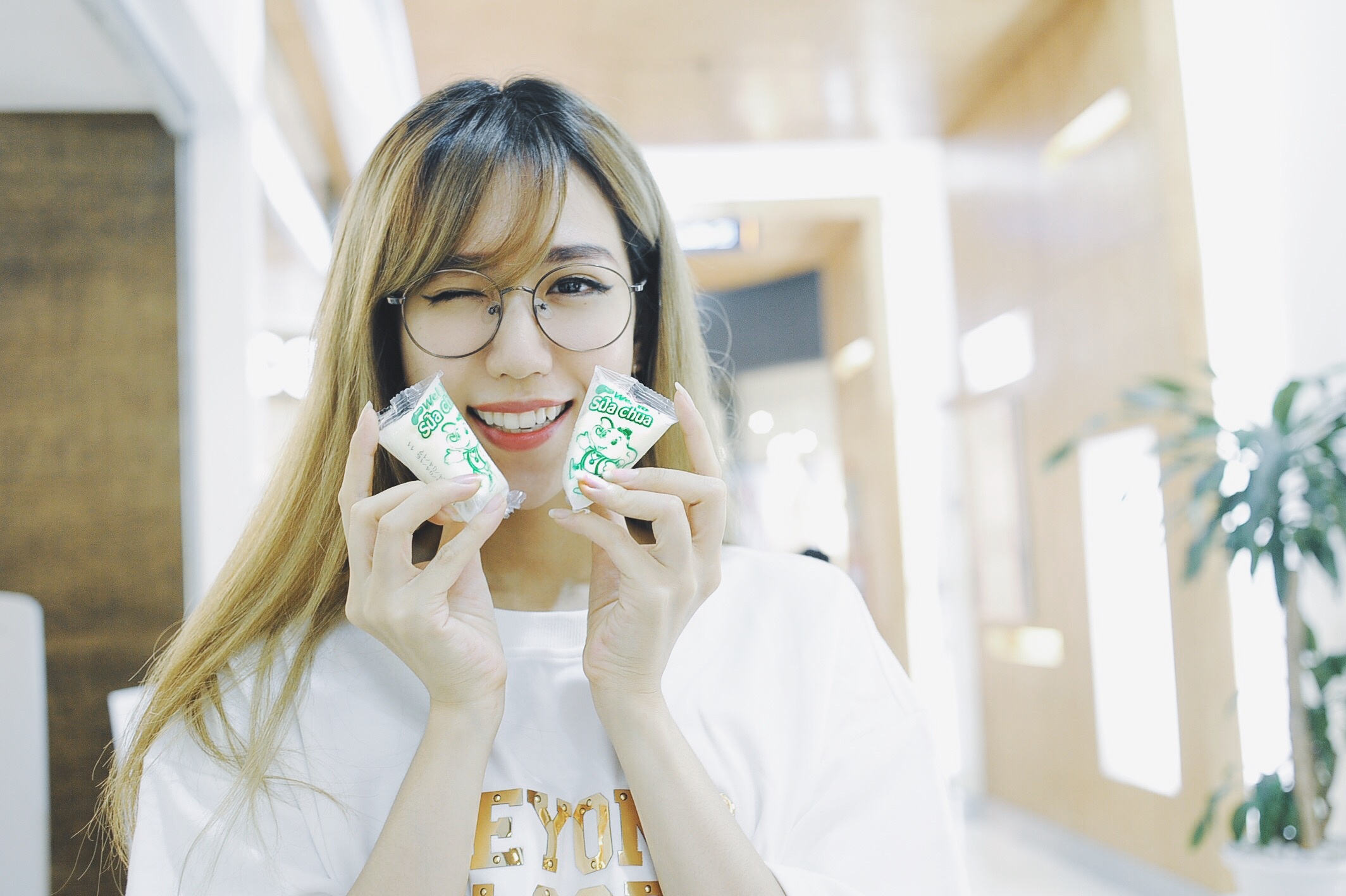 | Món khoái khẩu của cô nàng là sữa chua đá và siro đá Wel Yo. |