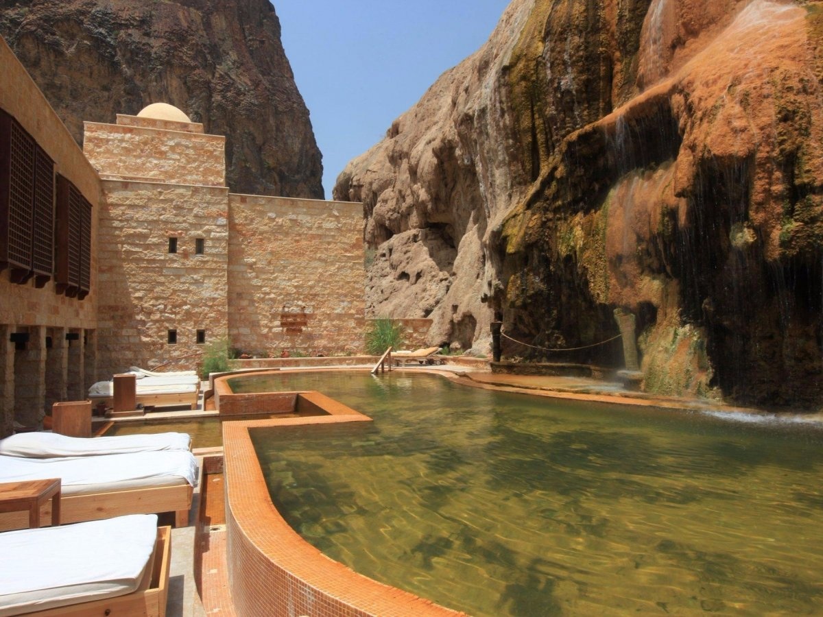 Bạn sẽ được hòa mình với thiên nhiên ở spa Evason Ma'In Hot Springs Six Senses tại Jordan. Khu spa nằm ngay dưới một thác nước nóng đổ vào bể bơi. Các liệu pháp ở đây tận dụng dòng nước giàu khoáng chất và các nguyên liệu từ Biển Chết.
