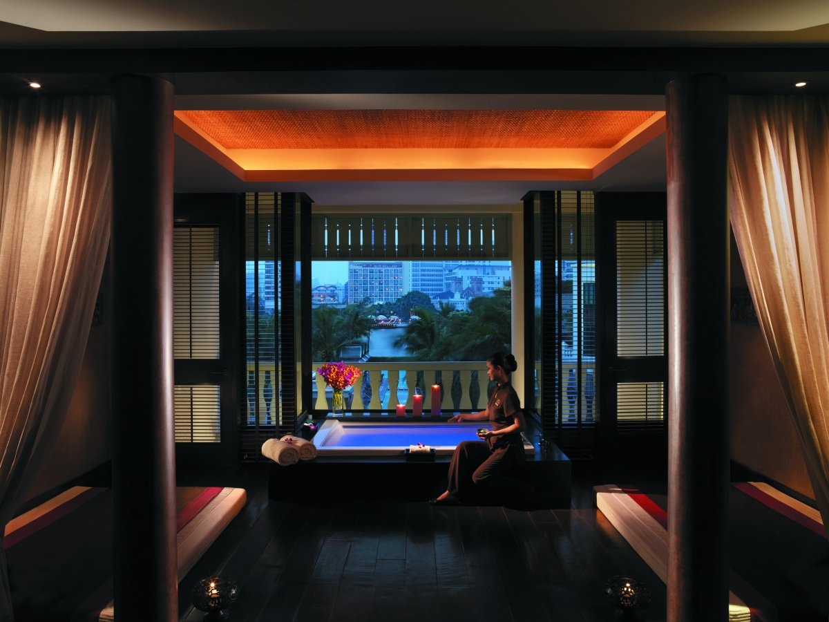 Spa ở khách sạn Peninsula tại Bangkok, Thái Lan, là một nơi trú ẩn lý tưởng, nằm trong tòa nhà có kiến trúc truyền thống nhìn ra sông Chao Phraya. Các khu phòng riêng có phòng tắm hơi và bể xoáy để du khách thư giãn.