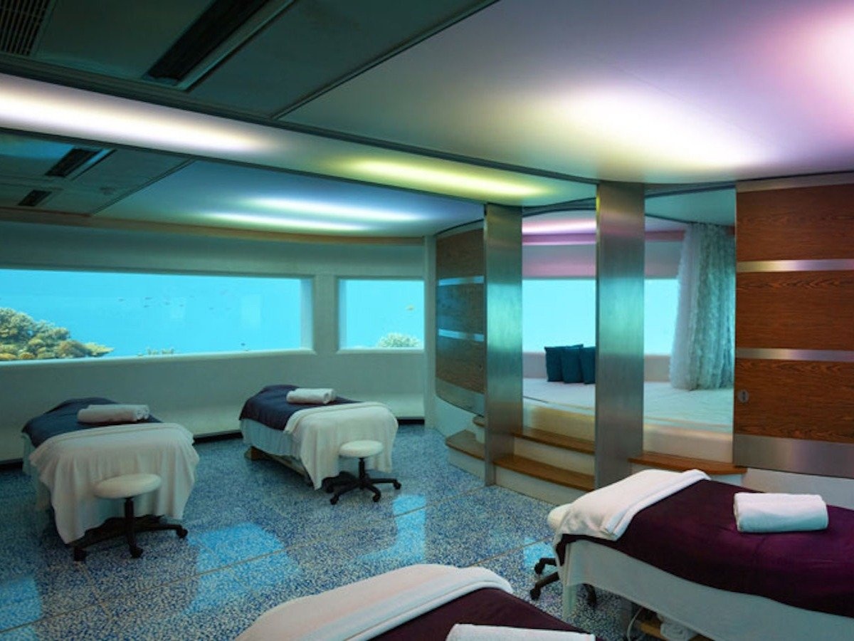 Theo trang Per Aquum Hufaven Fushi, Lime Spa của khách sạn ở Maldives này là nơi đầu tiên trên thế giới có phòng trị liệu dưới nước. Du khách có thể trải nghiệm cảm giác massage, thư giãn trong lúc ngắm nhìn làn nước xanh và các sinh vật biển.