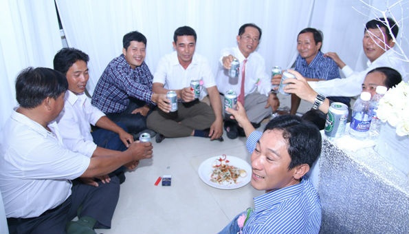 Không ít khách mời phải đứng hoặc ngồi xổm xung quanh các bàn tiệc.