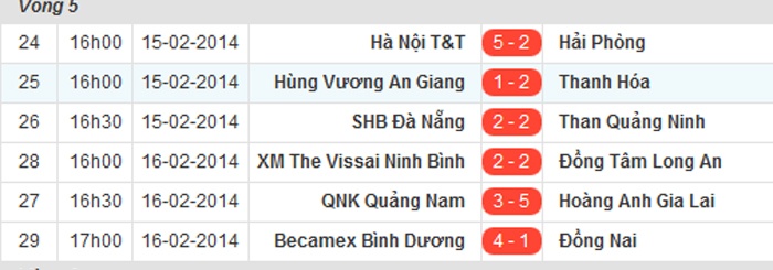 | Kết quả vòng 5 V.League 2014. |