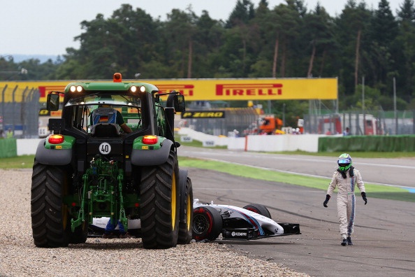 | Anh lững thững rời trường đua Hockenheimring trong nỗi thất vọng vì bị loại sớm. |