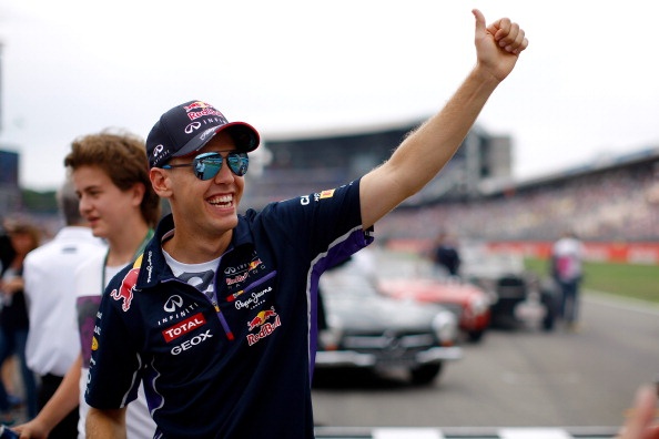 | ĐKVĐ Sebastian Vettel cười tươi vẫy chào người hâm mộ quê nhà. |