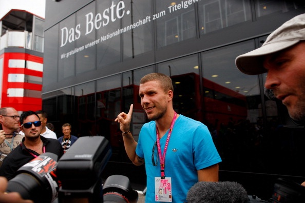 | Ngôi sao vừa cùng tuyển Đức lên ngôi vô địch thế giới, Lukas Podolski cũng đến dự khán để cổ vũ cho các tay đua đồng hương. |