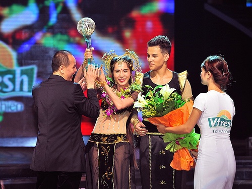 | Chương trình Bước nhảy hoàn vũ năm 2011 do nữ ca sĩ Đoan Trang và Thanh Bạch làm MC. Khi đến giây phút quan trọng nhất quyết định vị trí quán và á quân giữa Thu Minh và Thủy Tiên, Đoan Trang đã đọc nhầm kết quả. |